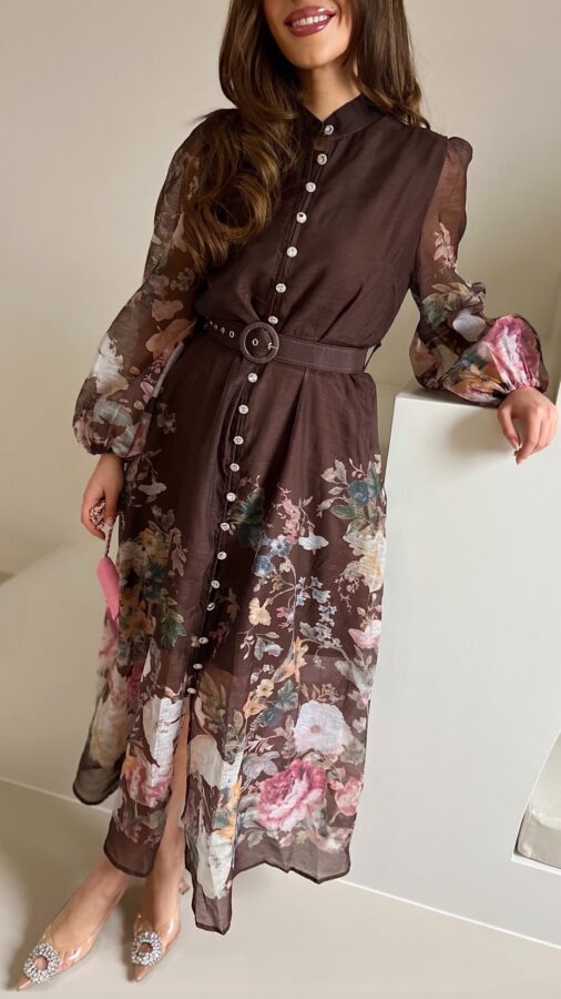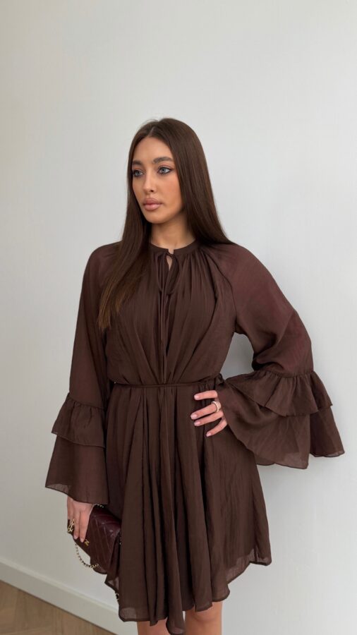 Read more Volant silk dress brown 20/11/2025 / 0 De jurk heeft geen stretch bij de taille en sluit met een rits aan de...