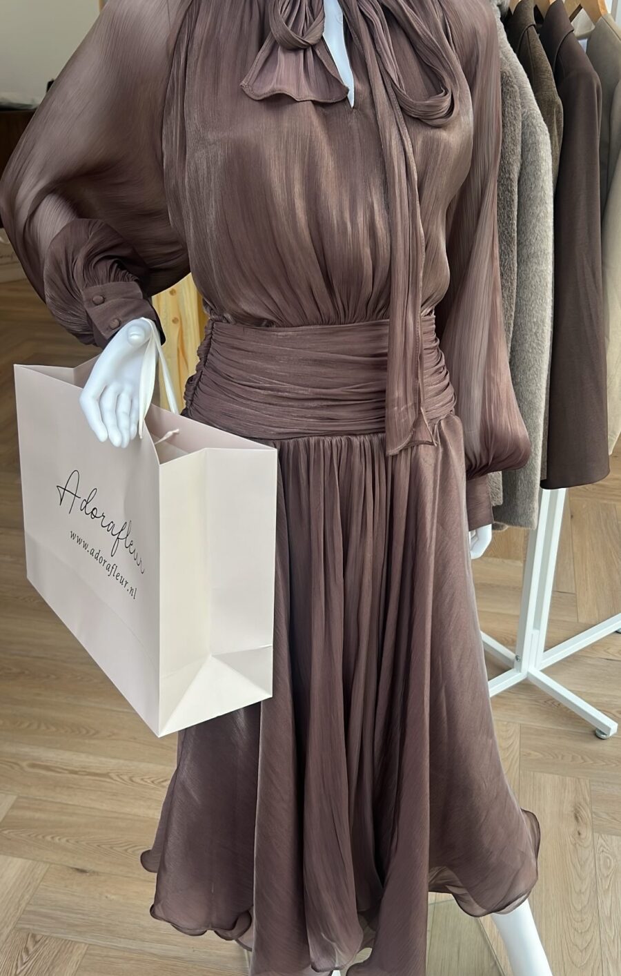 Volant silk dress brown PRE-ORDER