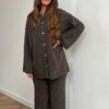 Het model is 1.70 m en draagt maat M/L. De stof is zeer rekbaar en zit heerlijk comfortabel. Maat M/L past tot en met maat 42/44 en wordt aanbevolen voor een lengte tot 1.70 m.
