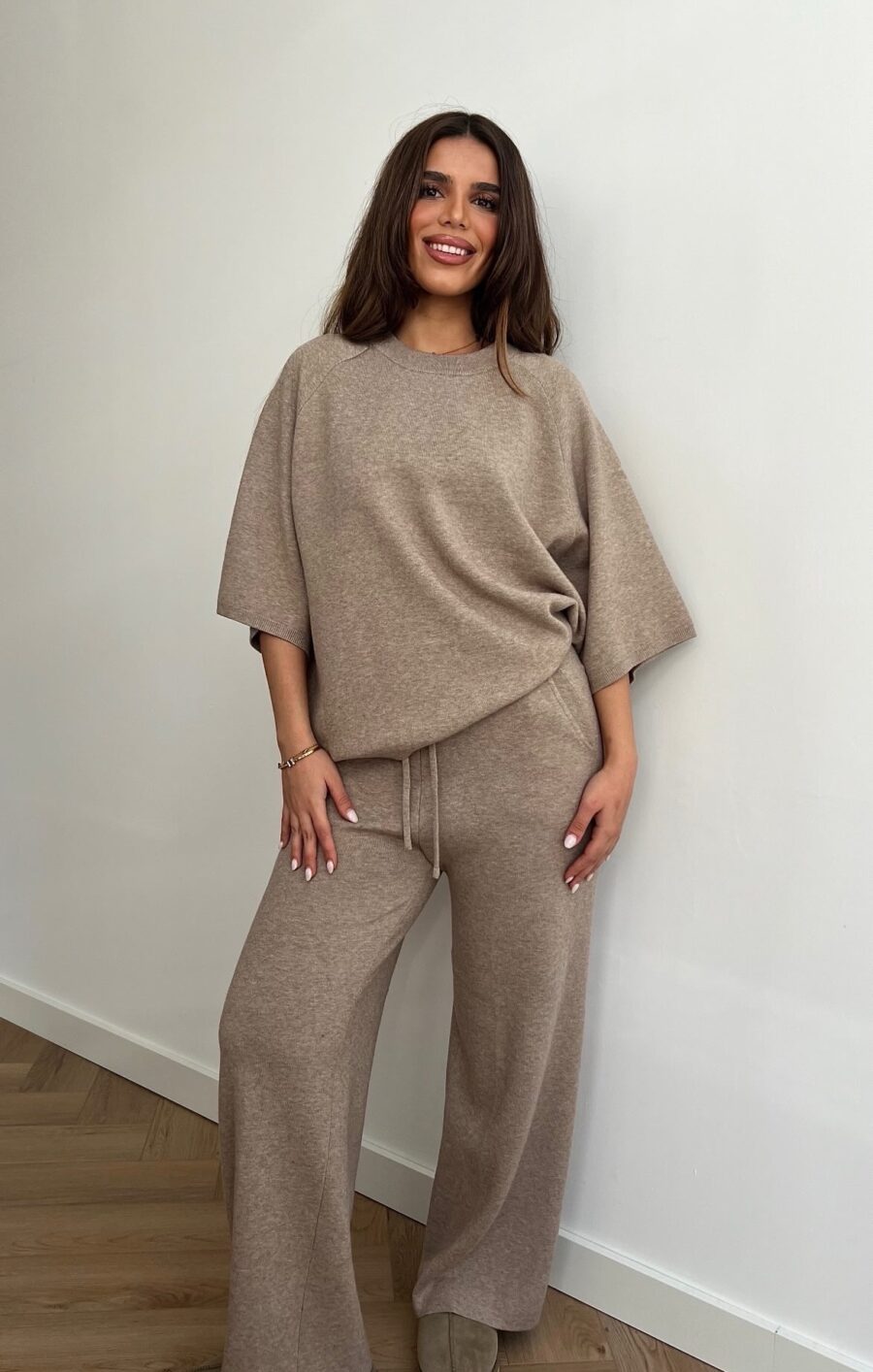 Het model is 1.70 m en draagt maat M/L. De stof is zeer rekbaar en zit heerlijk comfortabel. Maat M/L past tot en met maat 42/44 en wordt aanbevolen voor een lengte tot 1.70 m.