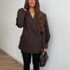 De blazer kan naar de taille getailleerd worden. De pantalon heeft een comfortabele stretch. Kies je gebruikelijke maat: S komt overeen met broekmaat 36, M met 38 en L met 40