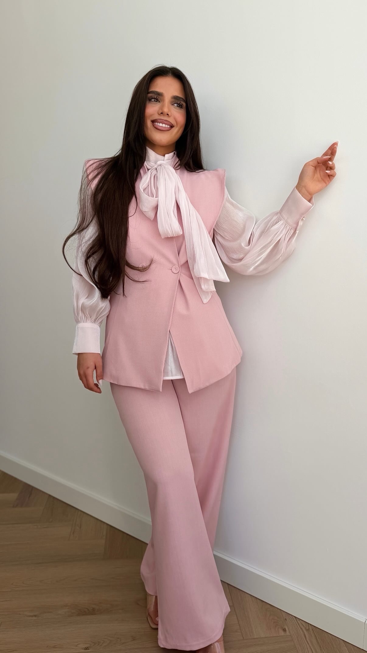 Gecombineerd met de chiffon blouse pink