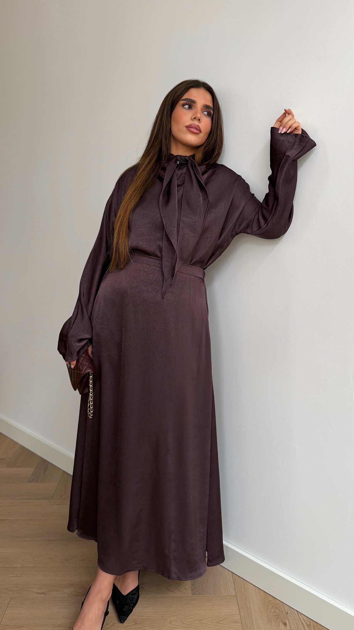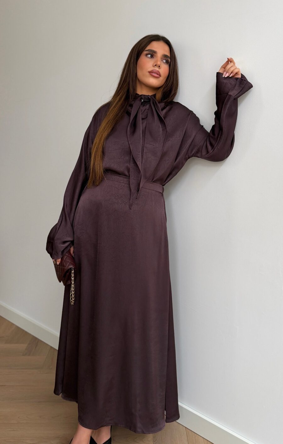 Prune satin skirt set