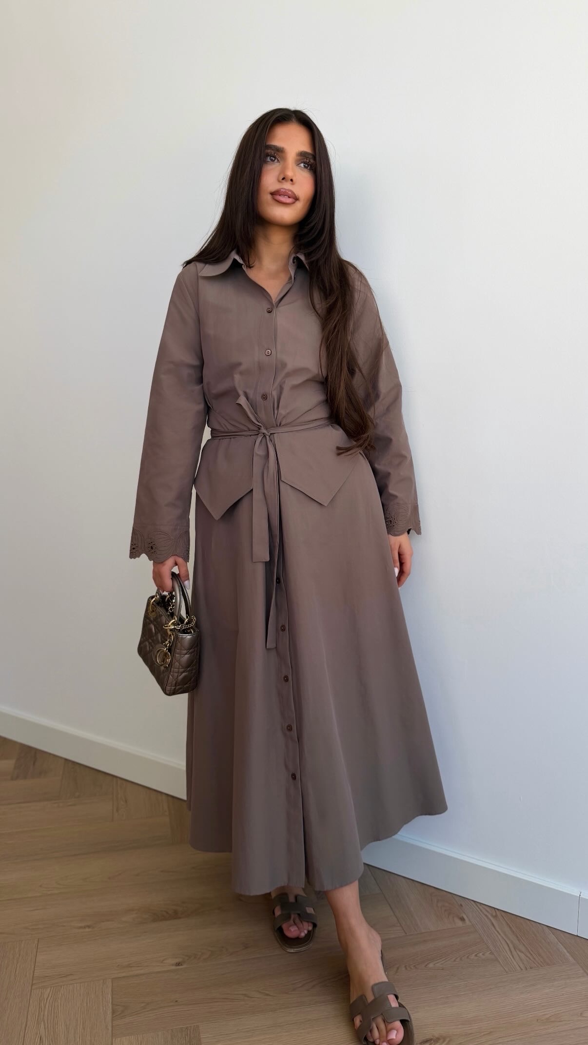 Long fitted tencel dress stone